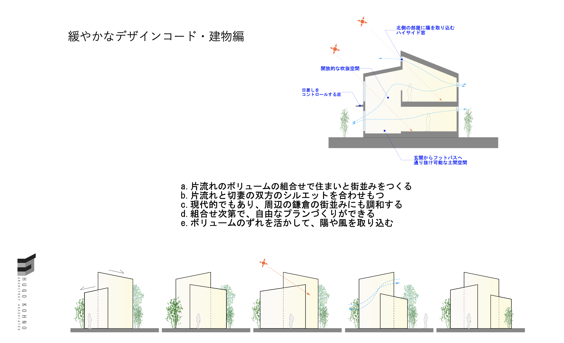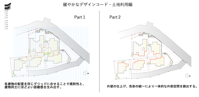 緩やかなデザインコードを「河野有悟建築計画室」が担当しマスタープランを作成しています。