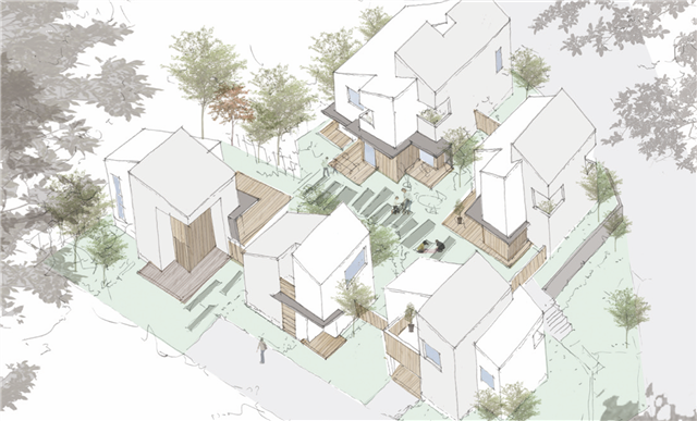 本プロジェクトは、戸建て用地4区画、集合住宅1棟/3世帯の全7世帯での計画となり、コーポラティブ方式を採用します。